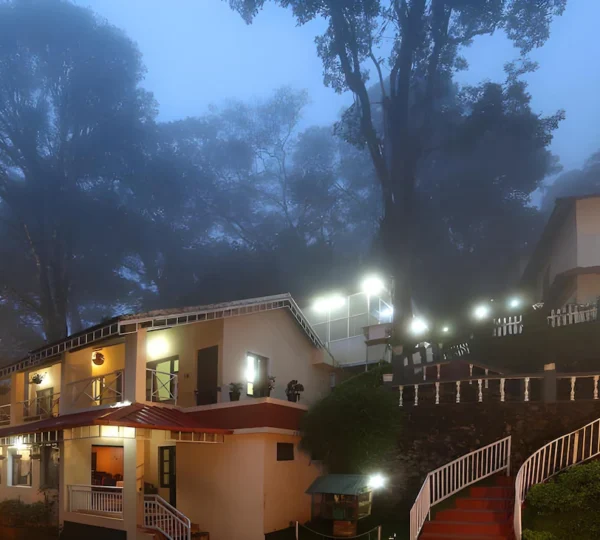 A romantic candlelight dinner and a glass of world-class wine can be enjoyed at this luxury family resort in Munnar, a beacon of tranquility.